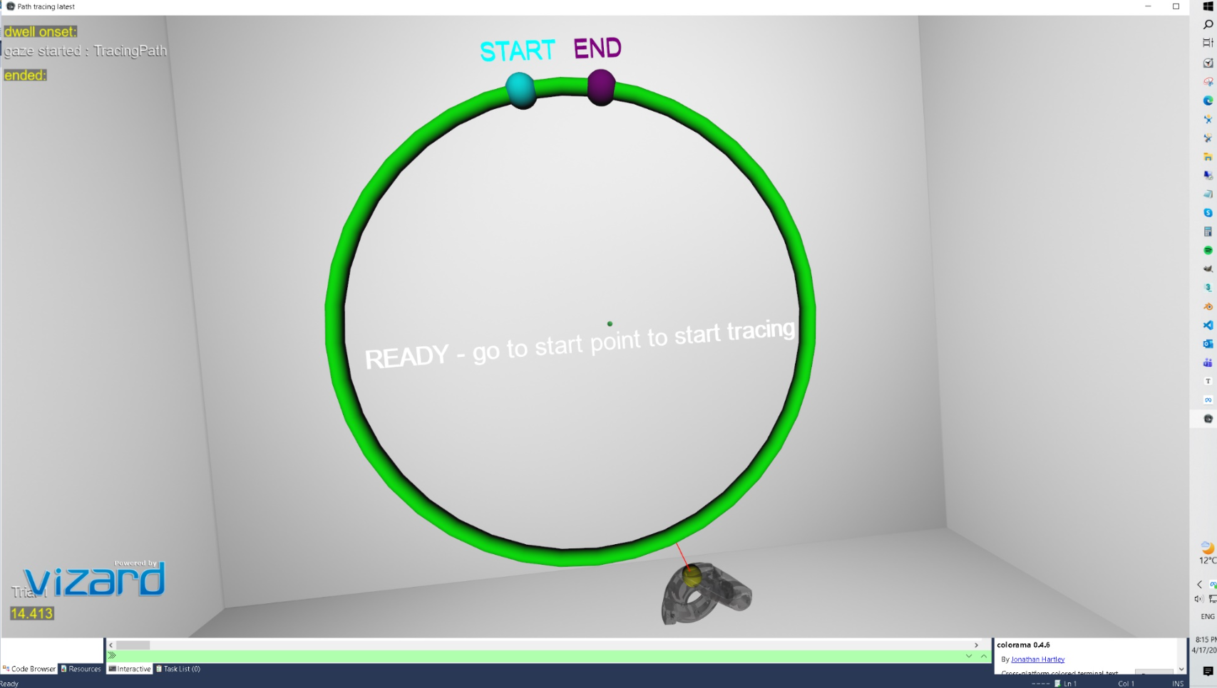 - Runs gaze intersection testing against the cursor and path if eye tracking is available